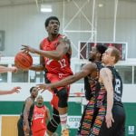 Rockets’ most experienced senior players Sam Toluwase and Leome Francis got them off to a brisk start with lay-ups and defensive rebounds respectively as point guard O’Showen Williams imposed himself from the tip and shooting guards Sam Grant and Reis Pinnock drained trebles easing Rockets ahead in the early exchanges. However Dragons’ Head Coach Chris Mellor soon changed matters for the hosts as they came back to trail by a single point at 13-12 before ending the opening period with a 24-21 advantage.