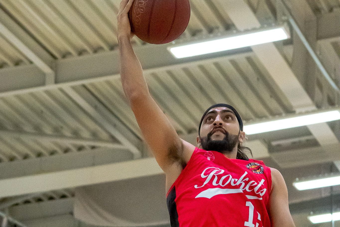 All players and coaches took the knee before tip and were socially distanced on the bench but once the game began Rockets Tyler Cartanio opened his and Rockets accounts with great defence and then coast to coast to finish before, moments later, he scored off an offensive rebound and sent a dish to Jaz Bains to stroke a treble Bains and Cartanio continued to trouble the Wolves who’d hardly beared their teeth in the opening quarter which Rockets took 30-13. One highlight of this period was A J Basi throwing a quick pass to Cartanio who returned the compliment for Basi to stroke a treble.