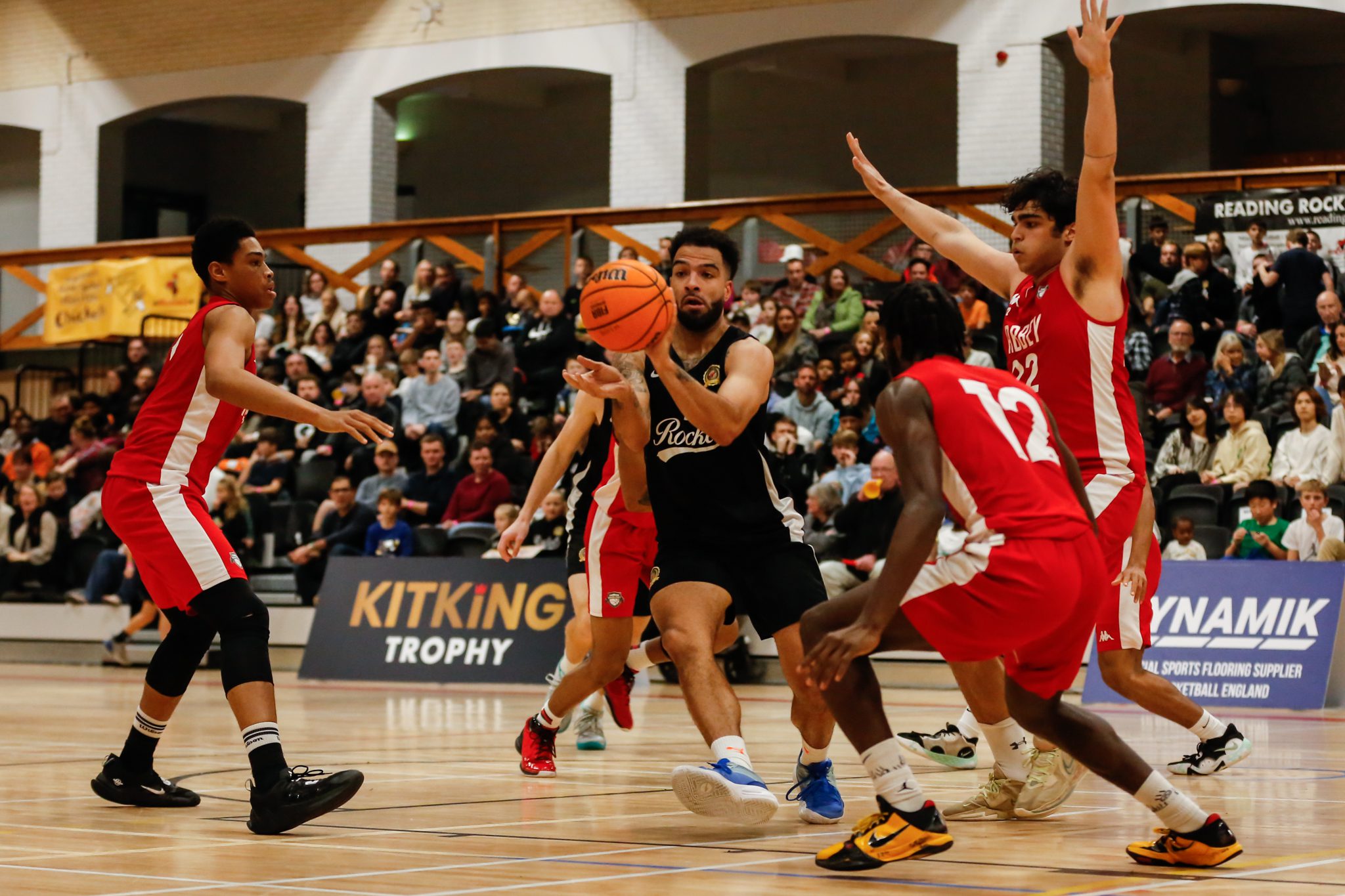 At a packed Loddon Valley on Sunday afternoon, Rockets continued their recent improvement as they took the roar out of the Lions after a very tight opening two quarters. The talented young Lions were first on the scoreboard before Lewis Champion sent an assist to Jordan Jackson to the basket quickly followed by a Reis Pinnock assist to Rockets ‘Mr Dependable’ Troy Cracknell to hit the first treble of the game. With each Rockets score Lions replied as the lead changed hands with almost every possession. Rockets American point guard Jermiah Jenkins hit a pull up score but Lions hit a treble though Champion replied likewise immediately leaving the teams just one point adrift again. GB U18 Captain and recent recipient of Reading Sports Personality Improver of the Year, Isaac Round scored before Champion saw Rockets finish the opening period 22-23 down.
