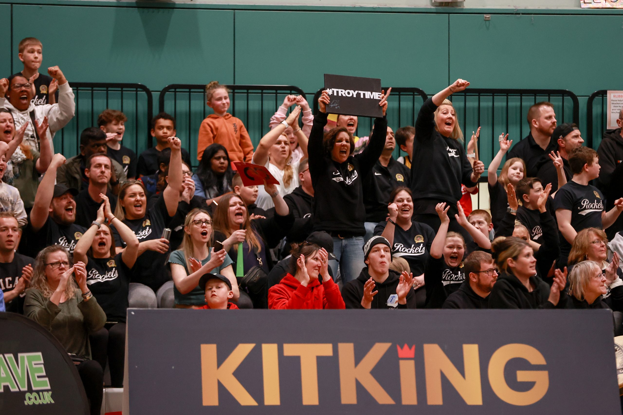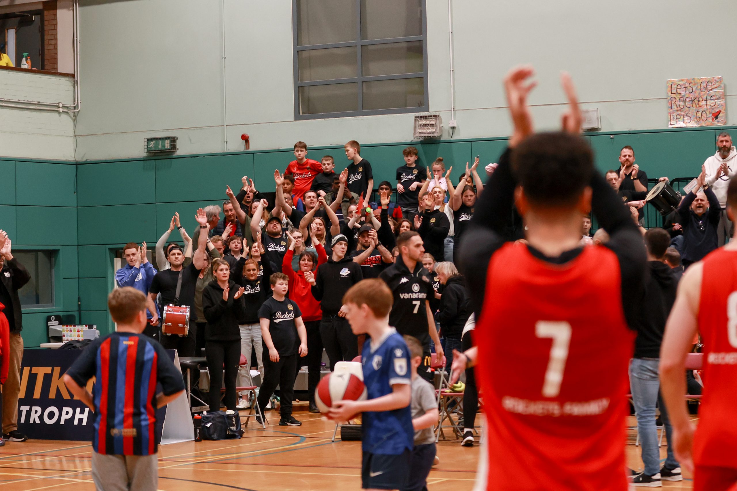 For different reasons both teams were determined to seek the victory….Rockets to reach their first final of the season having lost at the semi-final stage in the Kitking Trophy and Storm trying to emulate Rockets basketball history season of 2008/9 when they won every game and took the 4 National trophies. Both teams slugged it out like a pair of boxers, giving and taking punishment as neither was able to open up a significant advantage to ease off at all. Tied on 68 and 70 Rockets were called for a bench technical foul but players were putting their bodies on the line as Cracknell and Champion took charges. The atmosphere was loud and continuous as Rockets travelling supporters beat their drums and stood up encouraging their warriors to keep up the fight.