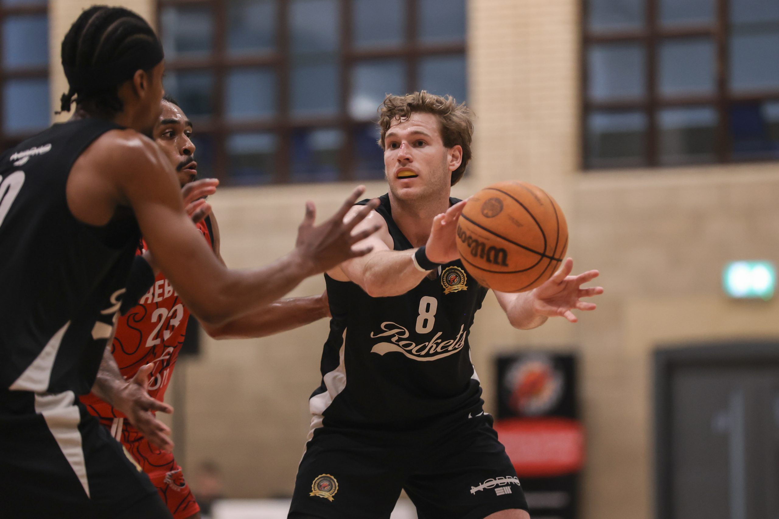 Having seen off Rockets in a pre-season friendly , Rebels hit the court confident but Mitch Clarke taking a charge, Finleigh Porter making a slam dunk and the returning Taylan Rowe stroking the first of his 4 trebles soon saw the hosts hit back and take a comfortable 31-19 lead at the first break.